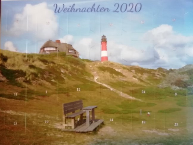 Adventskalender Veröffentlicht am 26/11/202026/11/2020 von Birgit Da mein Urlaub durch die Krise vereitelt wurde, habe ich mir Urlaubsfeeling per Adventskalender geholt. Teilen mit: Klicken, um auf WhatsApp zu teilen (Wird in neuem Fenster geöffnet) WhatsApp Klicken, um einem Freund einen Link per E-Mail zu senden (Wird in neuem Fenster geöffnet) E-Mail