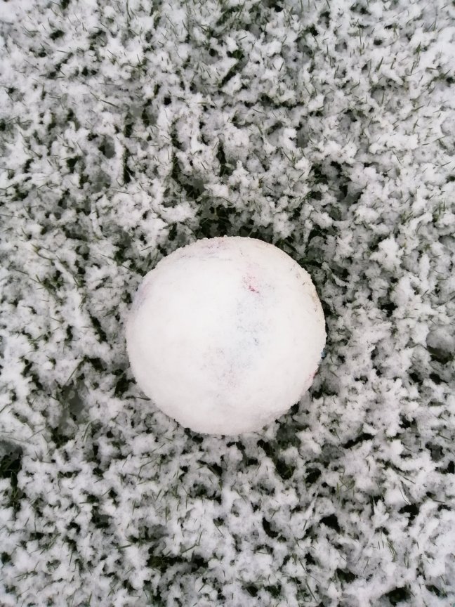Es ist ein Ball, der mit Schnee bedeckt ist.