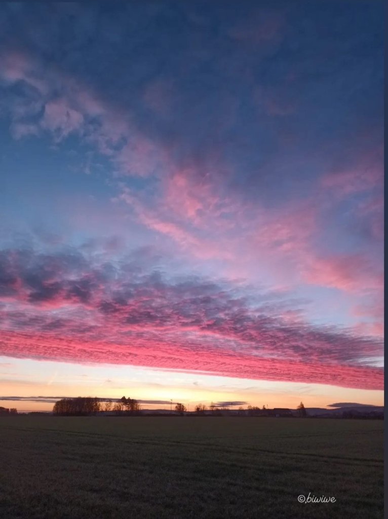 Heute Morgen – Der Himmel zeigt sich bunt – seit langen mal wieder Veröffentlicht am 04/02/2023 von Birgit Teilen mit: Klicken, um auf WhatsApp zu teilen (Wird in neuem Fenster geöffnet) WhatsApp Klicken, um einem Freund einen Link per E-Mail zu senden (Wird in neuem Fenster geöffnet) E-Mail