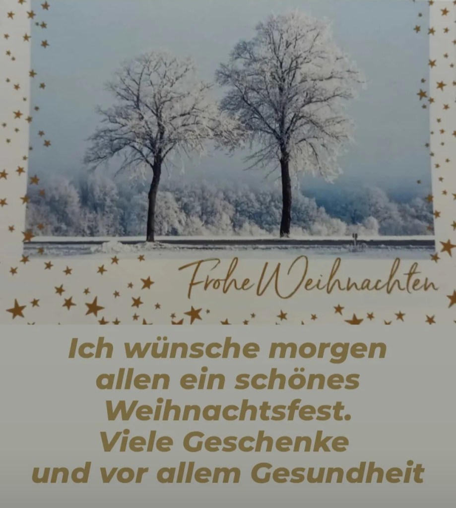 WEIHNACHTEN 2023 Veröffentlicht am 23/12/2023 von Birgit Teilen mit: Klicken, um auf WhatsApp zu teilen (Wird in neuem Fenster geöffnet) WhatsApp Klicken, um einem Freund einen Link per E-Mail zu senden (Wird in neuem Fenster geöffnet) E-Mail